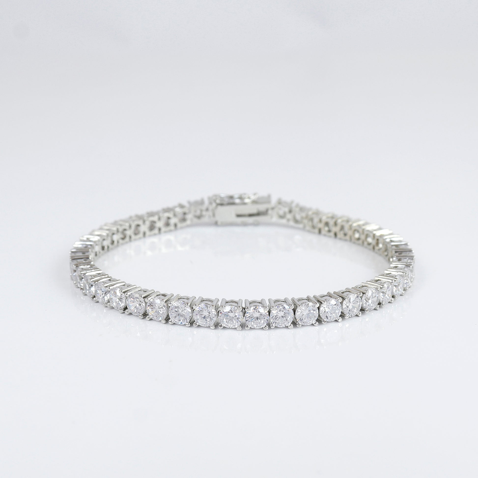 Timeless Tennis Design – Features a row of sparkling round-cut CZ stones, offering a luxurious and elegant look.