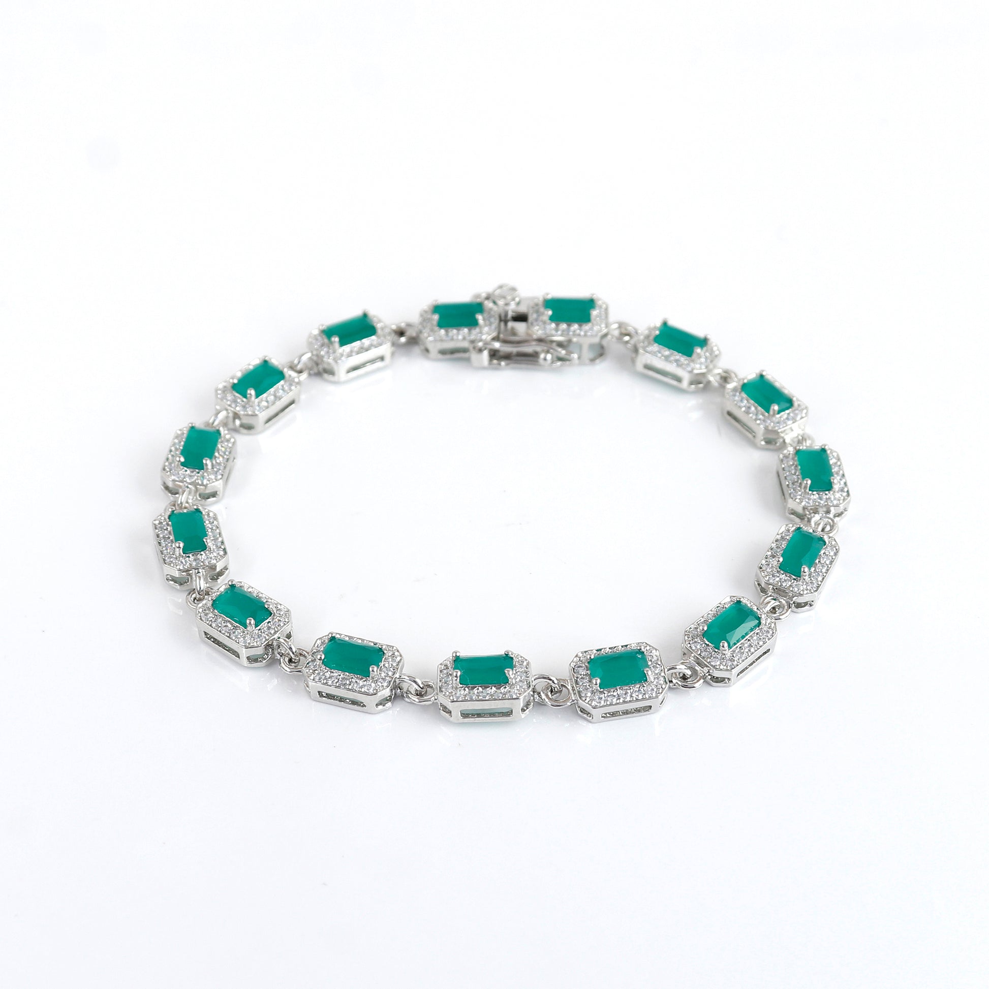 92.5 Sterling Silver Green Stone Bracelet | Elegant Emerald-Cut CZ Studded Bracelet for Women | Designer Party Wear Jewelry