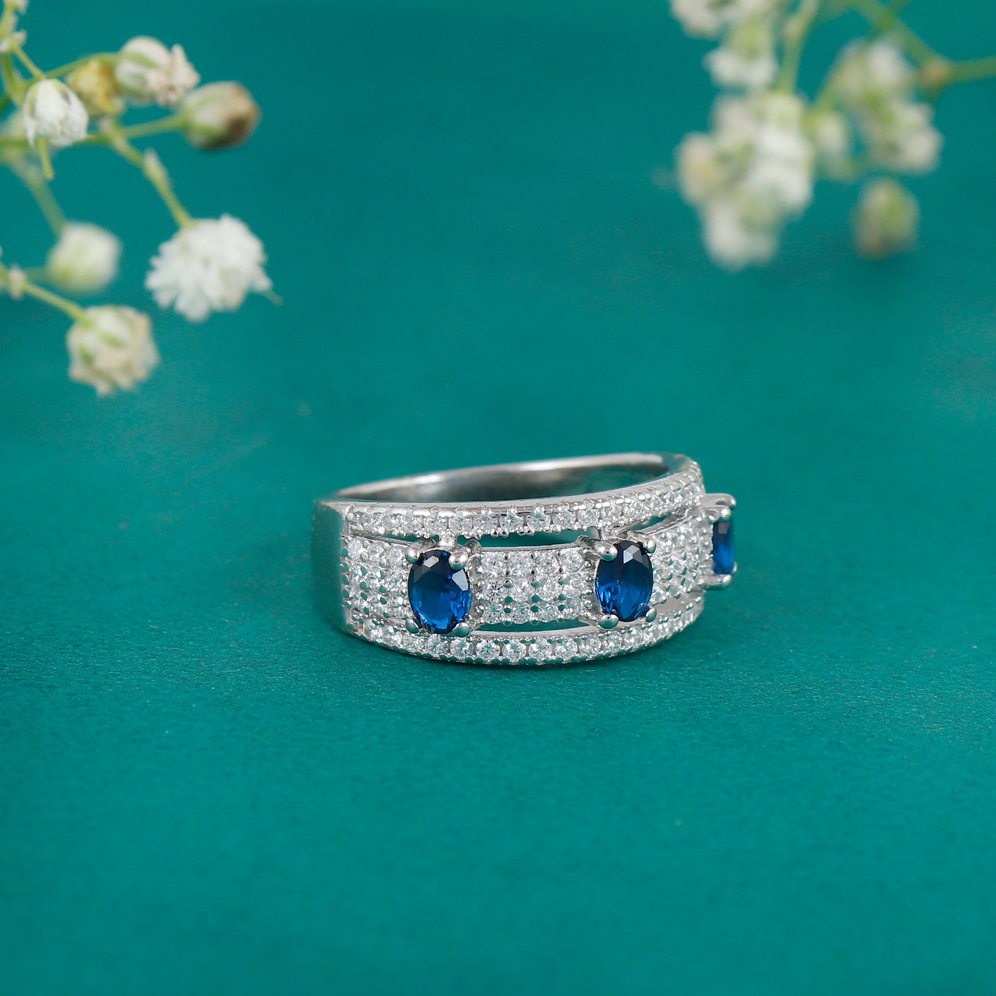 Sapphire Diamond Silver Ring