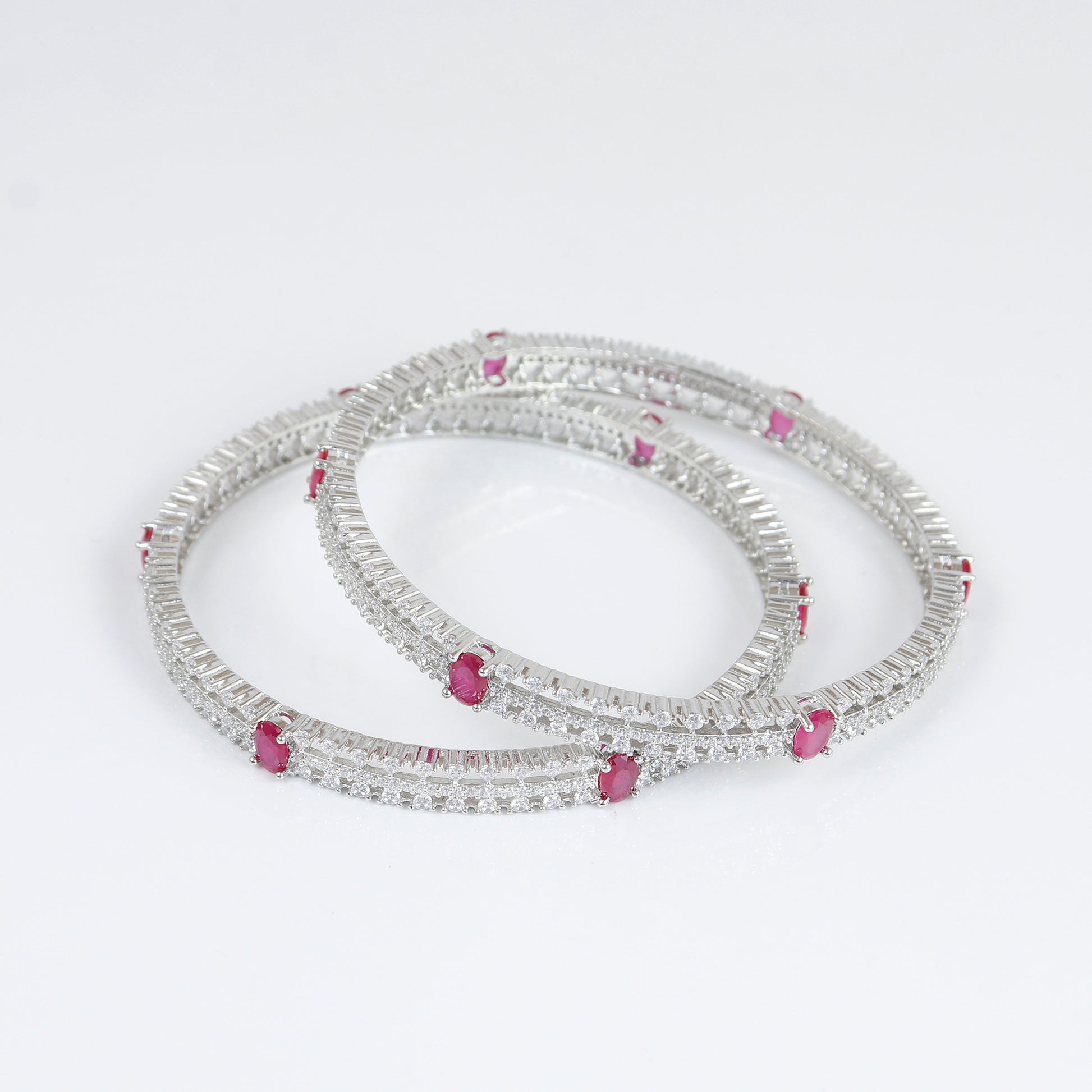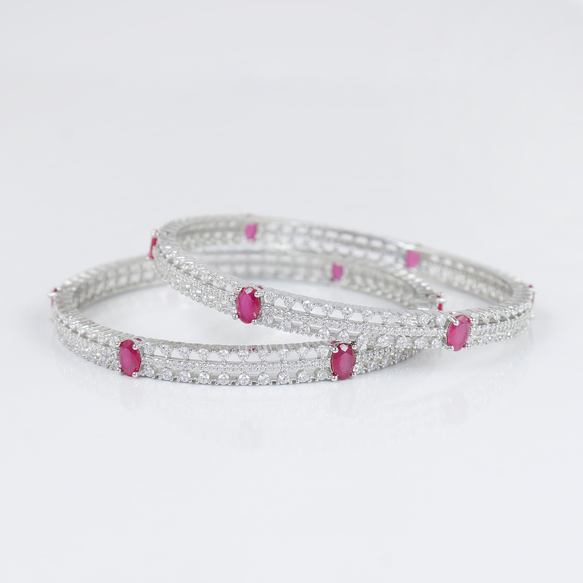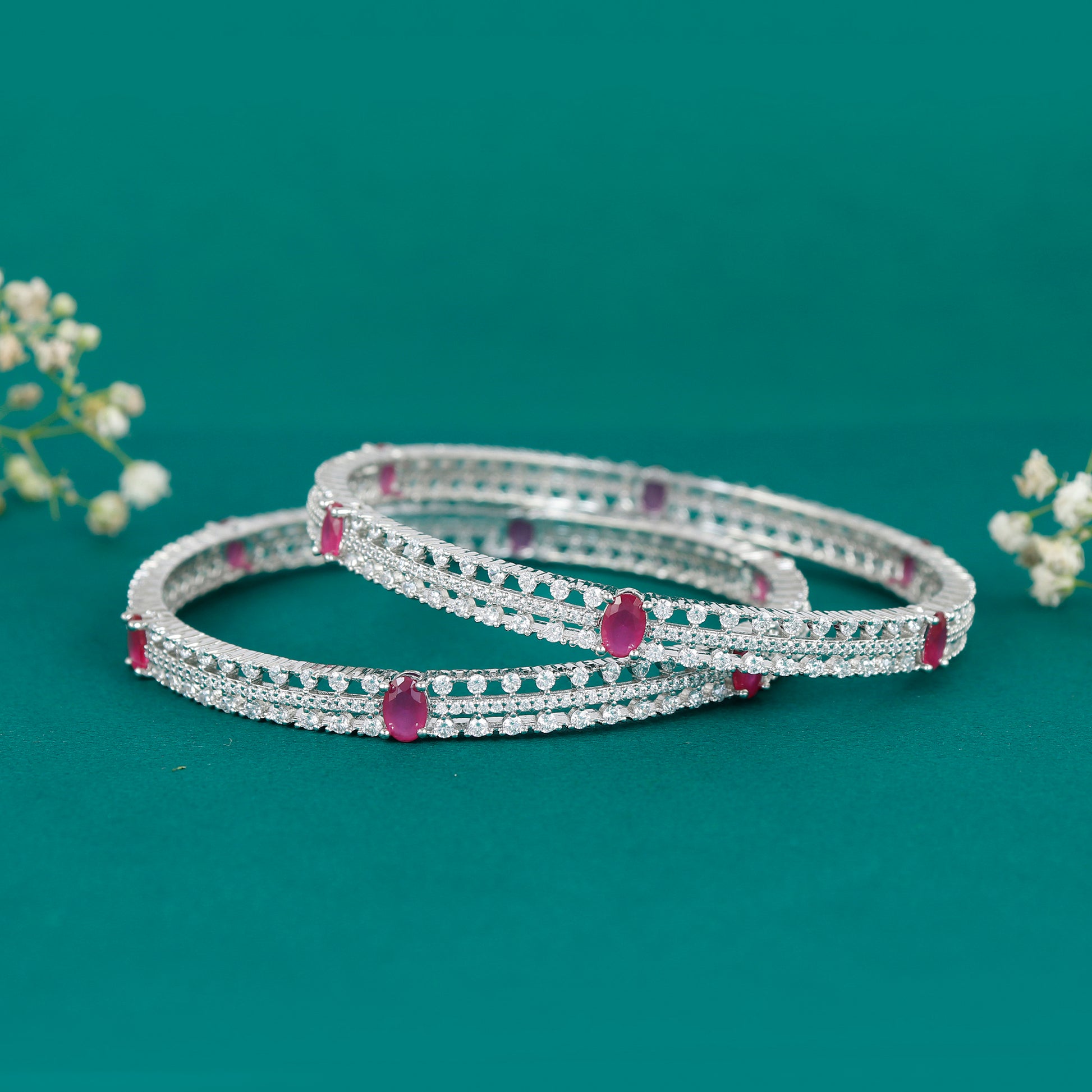 Add sophistication to your jewelry collection with this ruby red silver bangle. Handcrafted with premium silver and a high-polish finish, it features sparkling ruby accents that make it a statement piece. Hypoallergenic and tarnish-resistant, this bangle combines comfort, durability, and timeless style. Ideal for festive occasions, parties, or gifting.