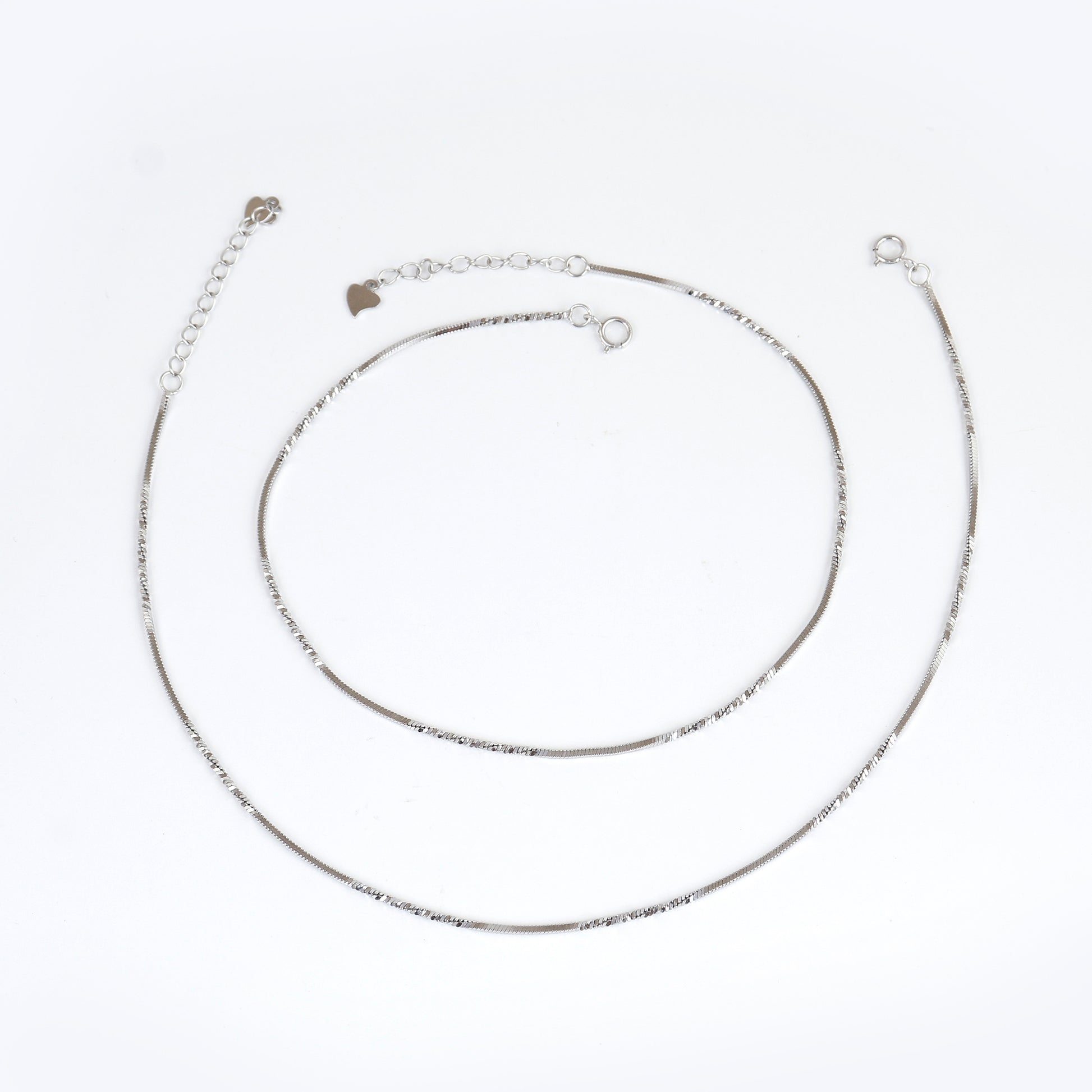 A sleek 92.5 sterling silver anklet featuring a fine snake chain with delicate textured accents for added sparkle. Lightweight, adjustable, and versatile, it’s the perfect accessory to complement both casual and festive outfits.✨ Sleek shine with subtle detail.