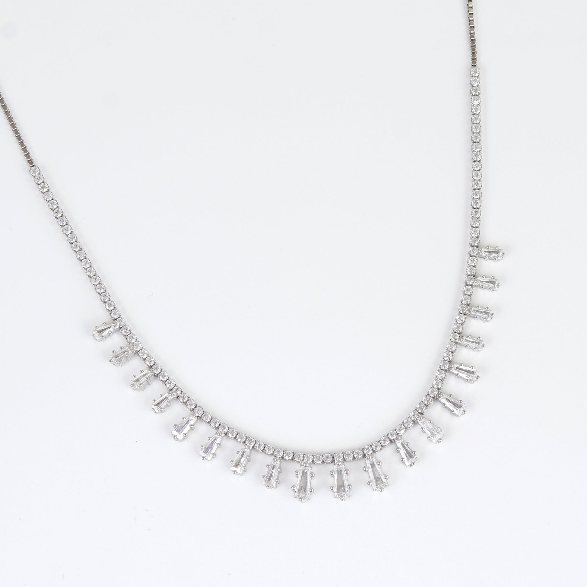 White CZ Stone Studded Necklace in 925 Sterling Silver – Timeless Statement Jewelry